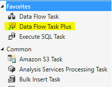 Once that’s done and you open Visual Studio, you’ll notice a bunch of new components in your SSIS Toolbox. The only one I’m covering here though is the new * (highlighted), although I may cover more in future as there are a couple that sound interesting (like parallel foreach loops!).